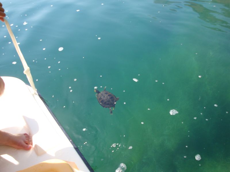 004. Long-awaited turtle - The turtles can stretch their necks like snakes as well as hiss and bite, therefore we set free the caught turtle very rapidly ;) Lake Kournas (Η λίμνη Κουρνά) 004. Long-awaited turtle