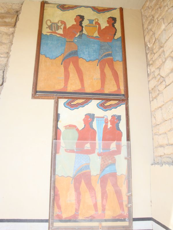 045. Procession - The frescoes are from the extension of the Corridor of Processions which takes its name from the murals on its walls that feature people walking along it. Initially, all frescoes at Knossos were only in red colors. Knossos (Κνωσσός) 045. Procession