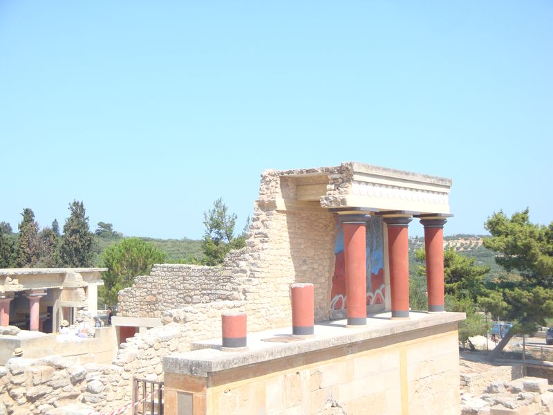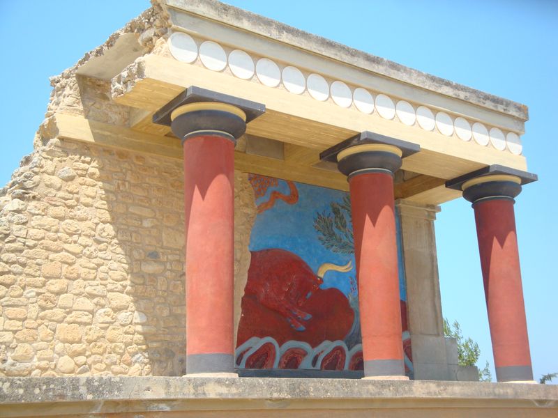 051. The West Bastion - You can see a magnificent portico with painted bar relief of bull-catching scene at Knossos (Κνωσσός) 051. The West Bastion