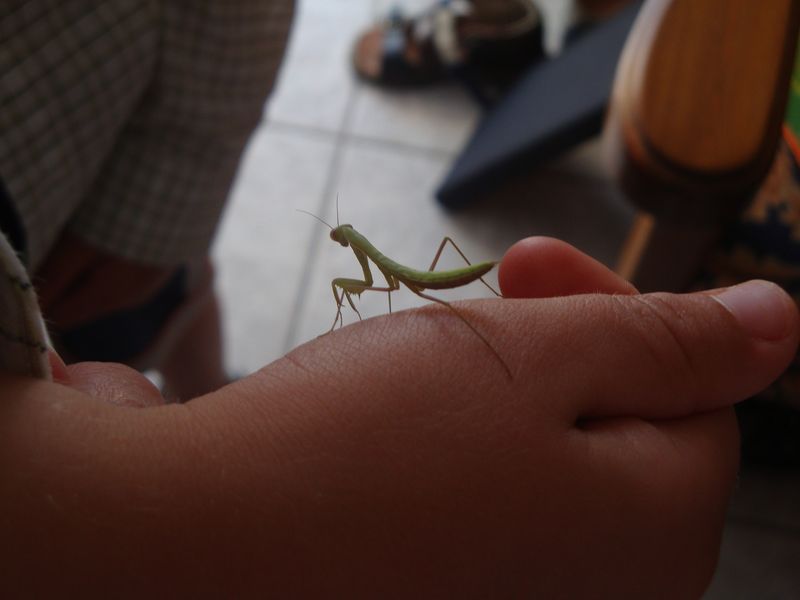 003. Mantis while visiting - South Crete is a pure kingdom of grasshoppers of many kinds, sizes and colors (but not terrible or dangerous!). They strove to get into our house in the evenings. 003. Mantis while visiting