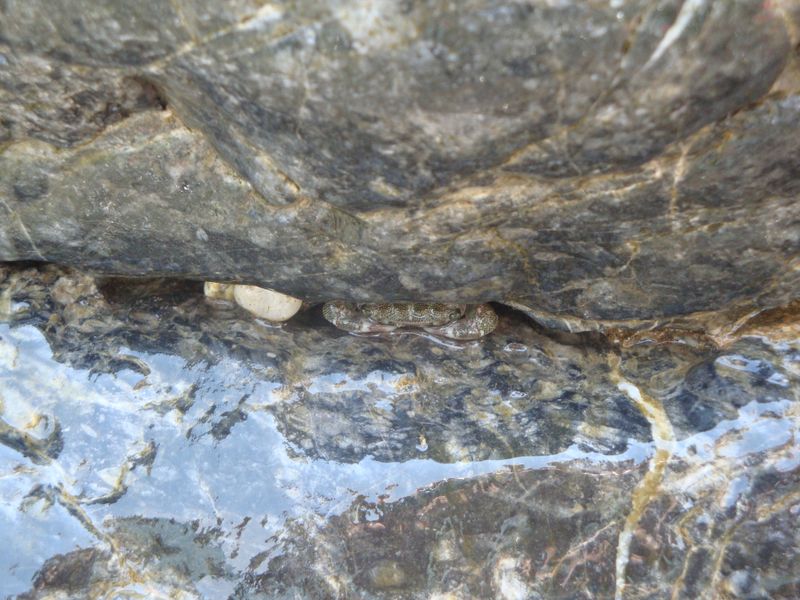 005. Hiding crab - The very right edge of Damnoni beach (η παραλία Δαμνόνι) near the rocks. 005. Hiding crab