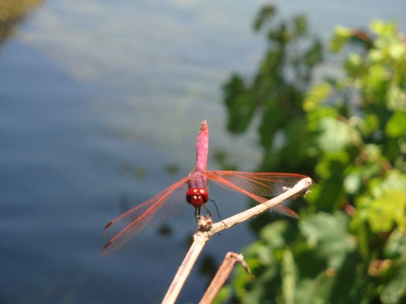 009. Hot pink dragonfly - There are lovely, big dragonflies of bright pink and blue colors on the rivers of South Crete. Damnoni beach (η παραλία Δαμνόνι). 009. Hot pink dragonfly