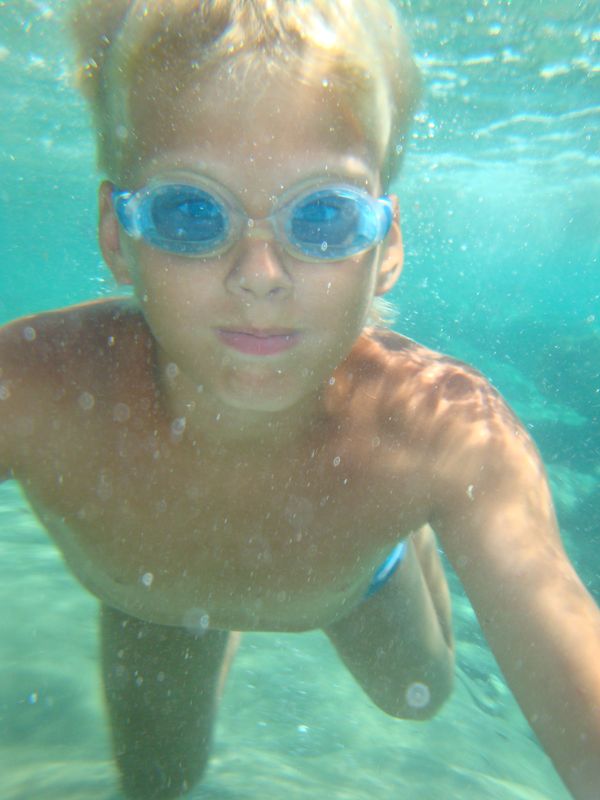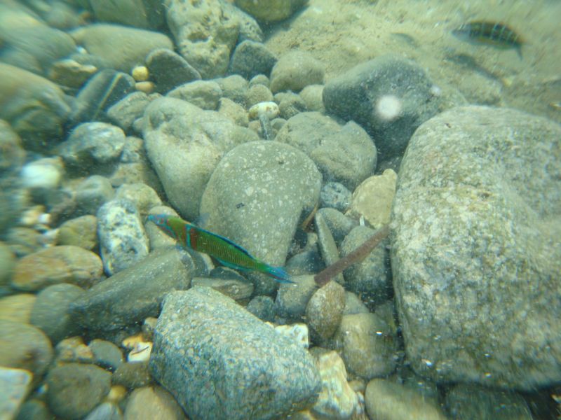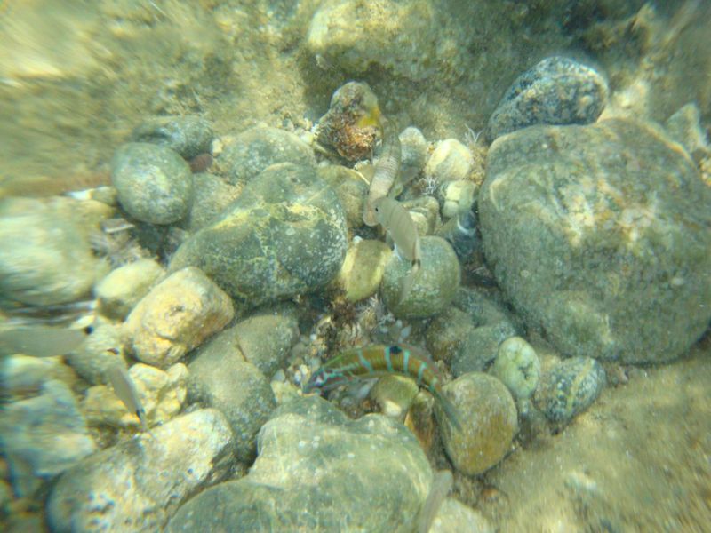 030. Frequent guest of southern shores - Underwater shooting. The right edge (border) of Damnoni beach, South Crete. 030. Frequent guest of southern shores
