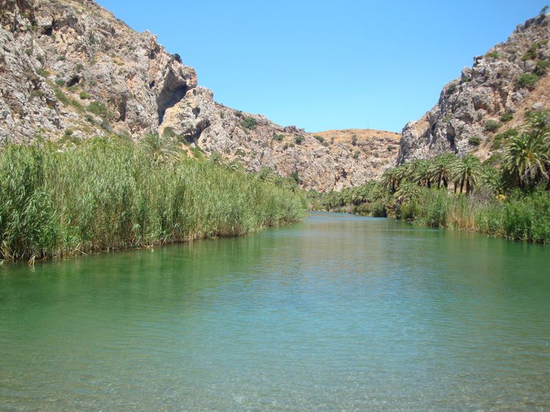 007. River at Damnoni beach - There is a mountain river flowing into the sea almost at each beach of the South Crete. In those rivers you can find various living creatures such as: geese, crabs, turtles, hot pink and sky blue dragonflies. Because of the rivers, the water at the beaches of South Crete is a bit cooler than at the North Crete. 007. River at Damnoni beach
