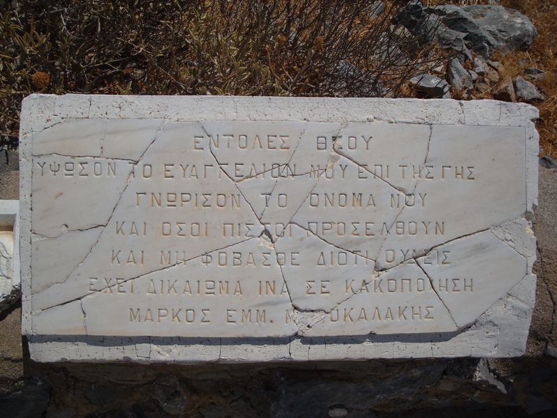 085. Marble plaque (plate) outside - Timios Stavros Church (Τίμιος Σταυρός). Skinaria village (Σκινάρια, Ρέθυμνο), South Crete. 085. Marble plaque (plate) outside