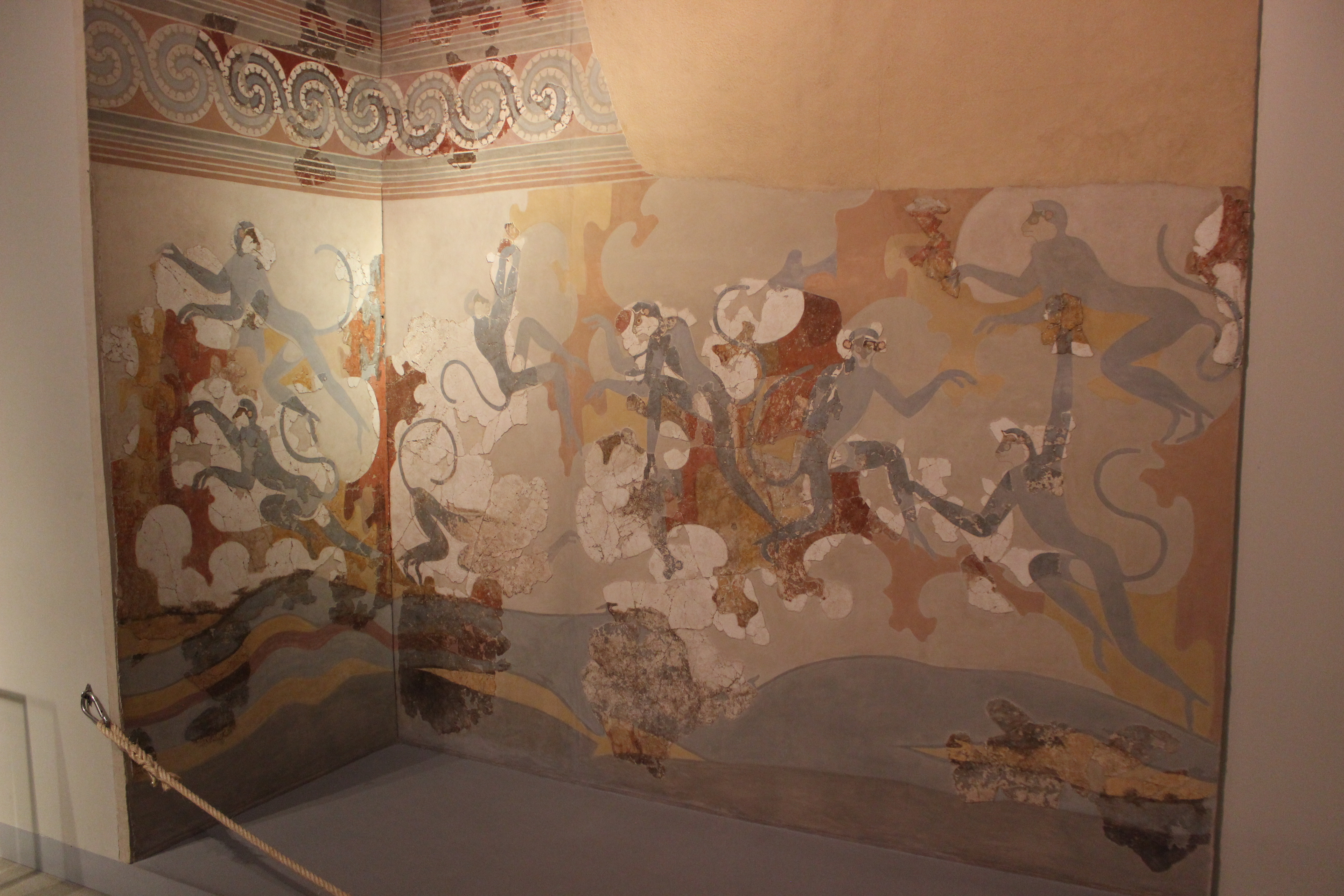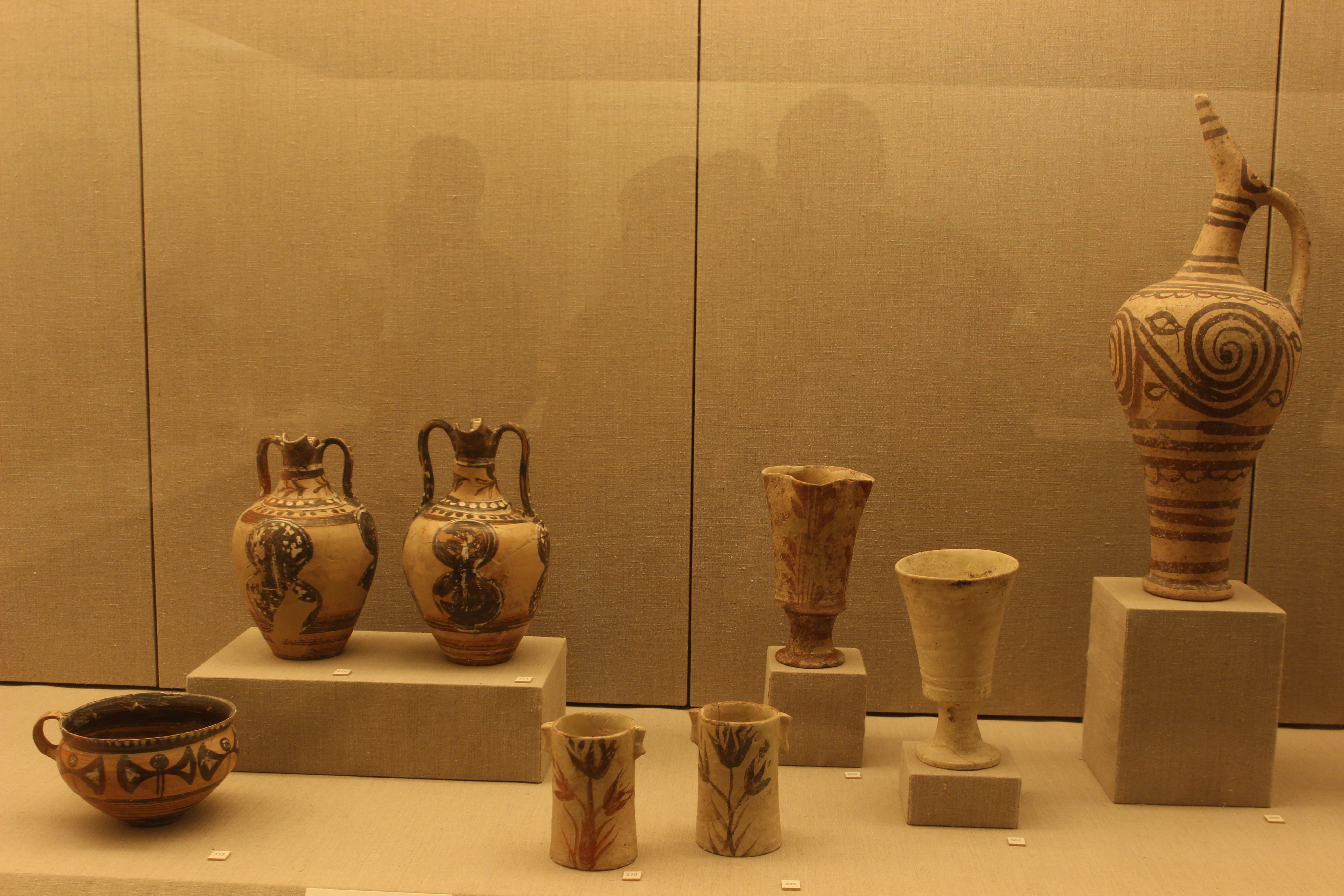 On the third day we visited Firá (Φηρά), the capital of Santorini Island, and the museum which represents the richness of the Minoan and Cycladic cultures. There are beautiful frescoes in Egyptian style with the papyrus flowers and the frescoes depicting the blue monkeys that we saw on Crete in the Knossos Palace.