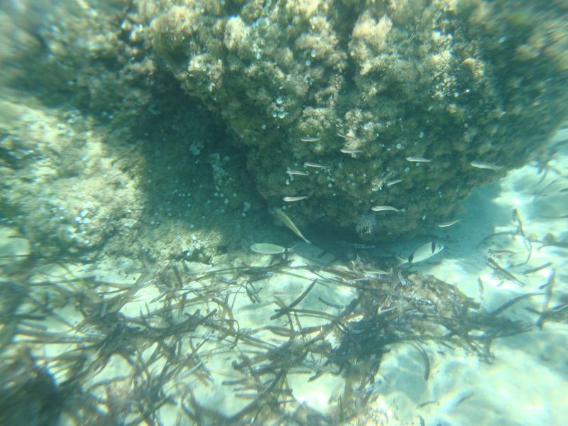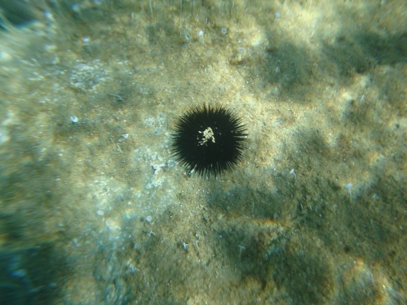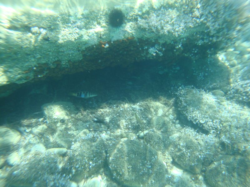 To the left of our beach Panormos (Πάνορμος) we discovered the remains of early harbour constructions under the water, and perhaps even an ancient city that had once stood here. To the right of the beach were cosy coves, where couples would happily steal in to swim and sunbathe naked, and Greek lizards with a deadpan countenance sat warming themselves on the flat stones. Once or twice we saw a suspicious back with a fin in the sea, which at first raised many questions – as it turns out, dolphins gather here… not what we had thought at first!