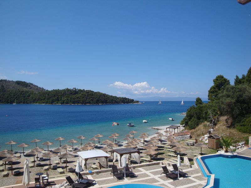 It was already dark when a friendly Greek met us at the port. My mother was still hoping for a large ship, but this was only a motor boat covered with an awning. I remember being struck by the fact that the Greek was barefoot, and how, as we raced across the blue sea under the starry night sky, the wind blew aside the awning, and sea spray flew into our faces. It was a small, but exciting, adventure! I wasn't afraid, as I had chosen the time for the trip myself and believed that we would get there without hitch - I merely tried to hold the children tighter. After that things only grew more enigmatic: we were loaded into a black jeep, which bore us to the hotel through a dark, mysterious forest – are there really such forests in Greece? It was the end of May, and we were the first guests in the hotel. We were warmly welcomed by Anastasia, the hotel manager. We had the best room, with three balconies, the most beautiful beach and a simply wonderful holiday!
