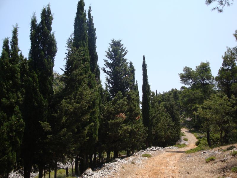 Surrounded by shady greenery, we climbed briskly up to Mount Dhelfi and discovered there a well-preserved ancient path planted with cypresses. We didn't make it the last 50 metres up to the watchtower on the very summit because of the children and the precipitous path, even Dad didn't risk it with all his experience.