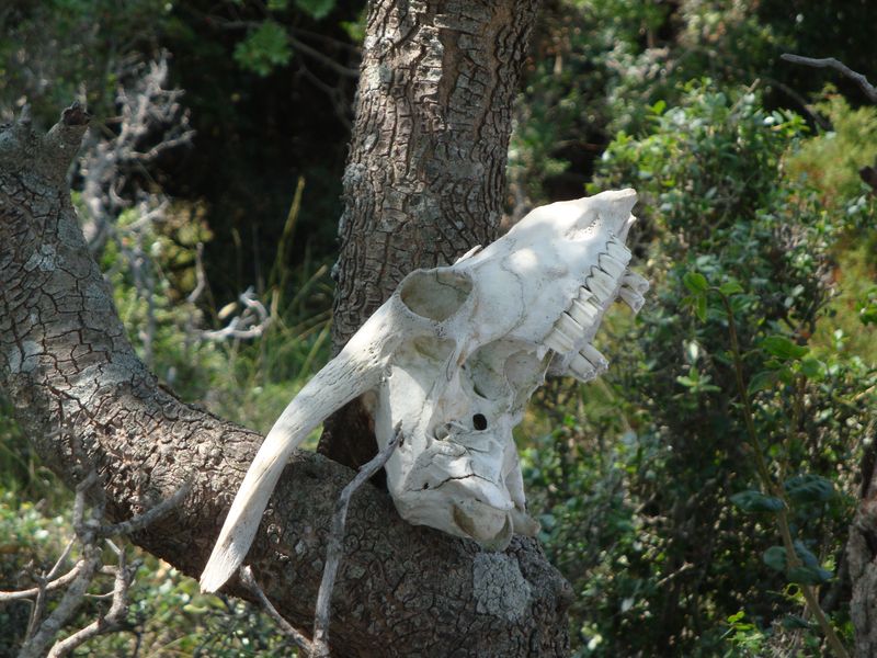 By the way, a little story. We waited for my geologist father for the big hike up Mount Dhelfi (Δέλφη) and to the Sendoukia tombs. On Mount Dhelfi are ancient tombs dating back 4,000 years, and to this day nobody knows who is buried in them. At the beginning of the path you are greeted by this lovely goat skull;)